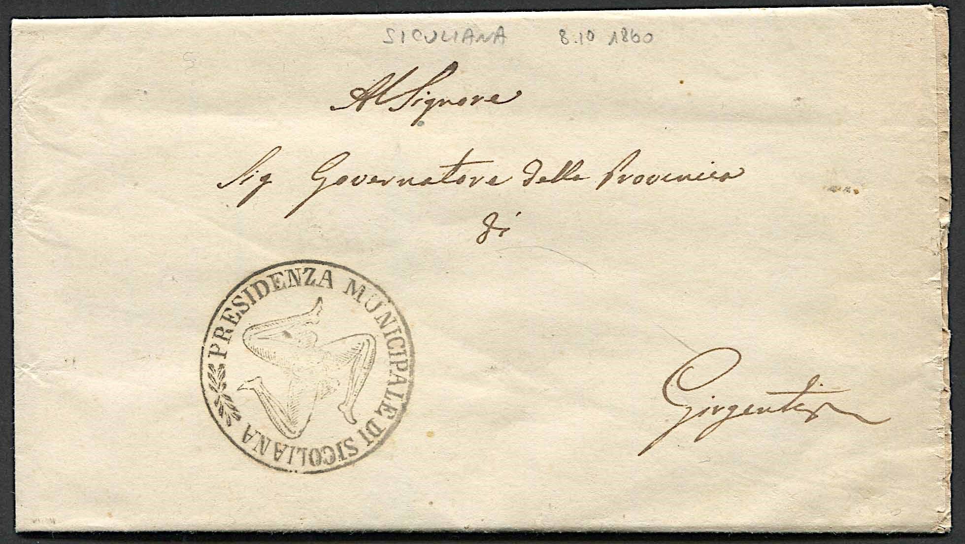 1860, Sicilia, lettera in franchigia da Siculiana per Girgenti dell’8 ottobre 18 [..]