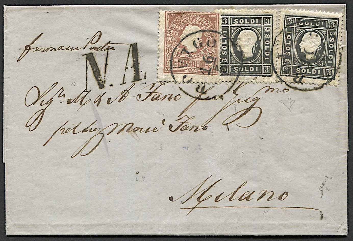 1862, Lombardo Veneto, lettera da Rovigo per Milano del 16 maggio 1862