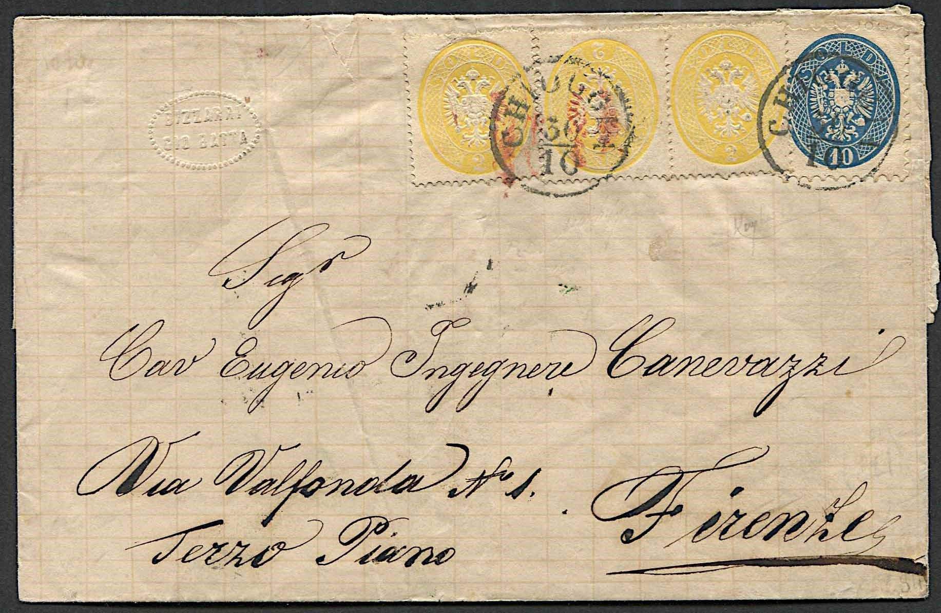 1865, Lombardo Veneto, lettera da Chioggia per Firenze del 30 ottobre 1865