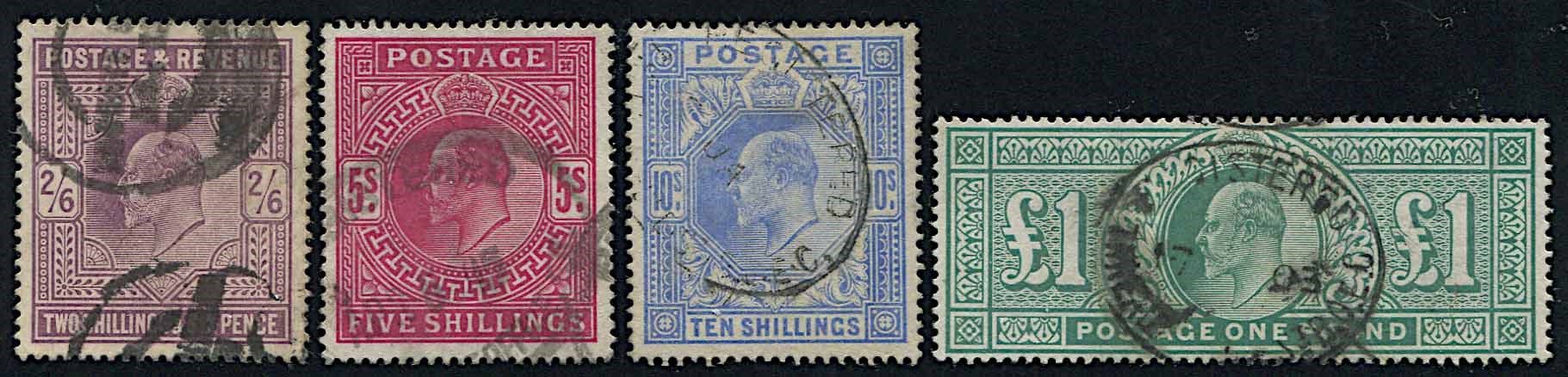 1902, Great Britain, 2 s., 6 d., 5 s., 10 s.