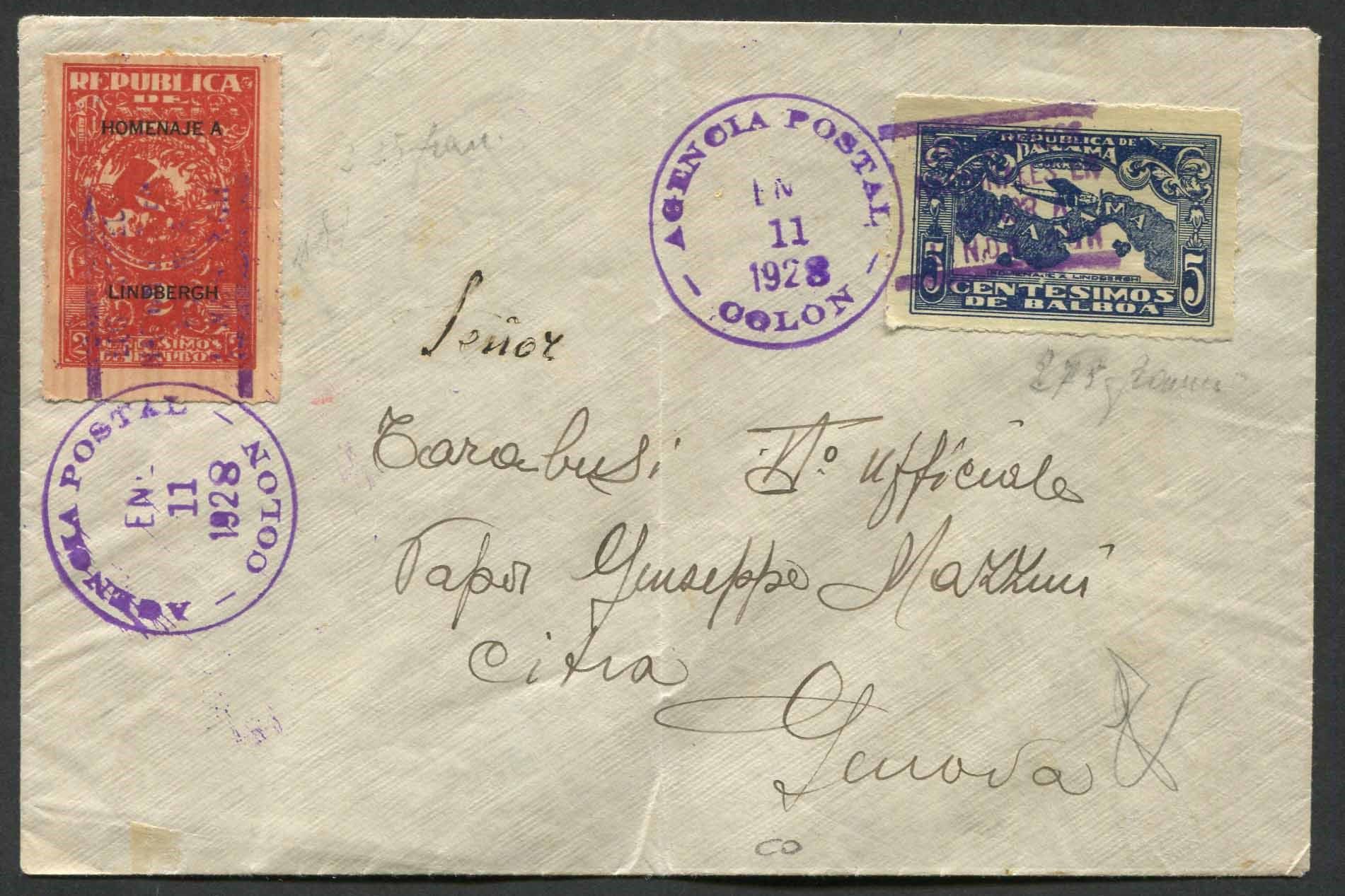 1928, Charles Lindbergh “Good will tour”, cover from Colon to Genoa (Italy)