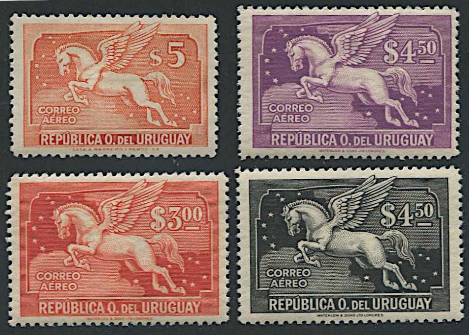1929/35, Uruguay, “Pegasus”, Air Post, four set hinged