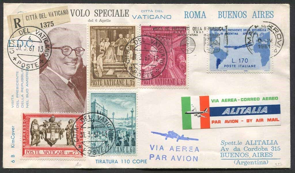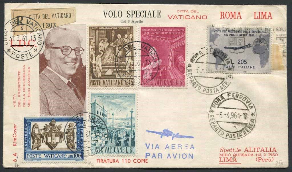 1961, Città del Vaticano, tre aerogrammi raccomandati