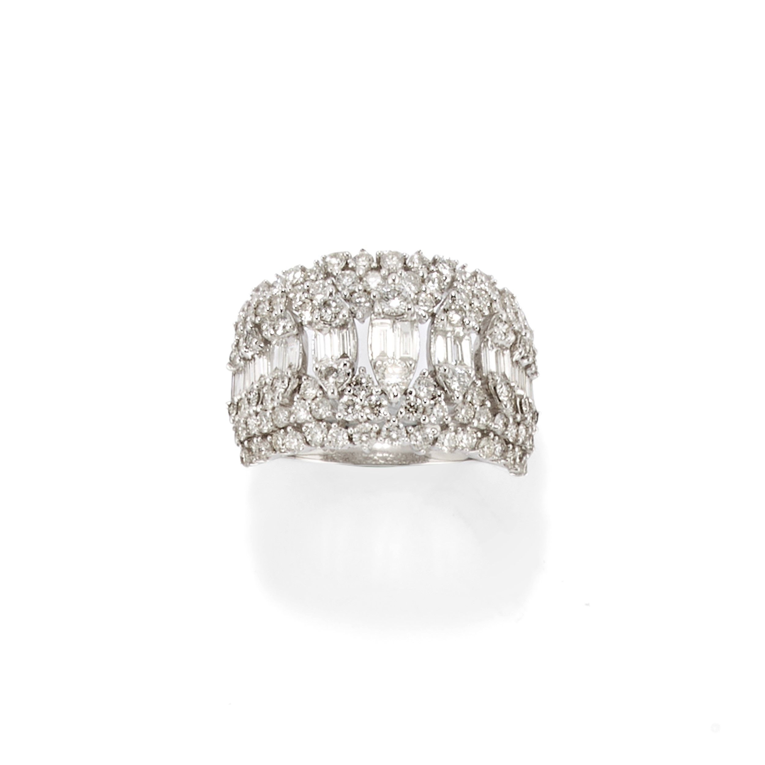 a fascia traforata, diamanti taglio brillante e baguette per totale ct 2,00 circa.