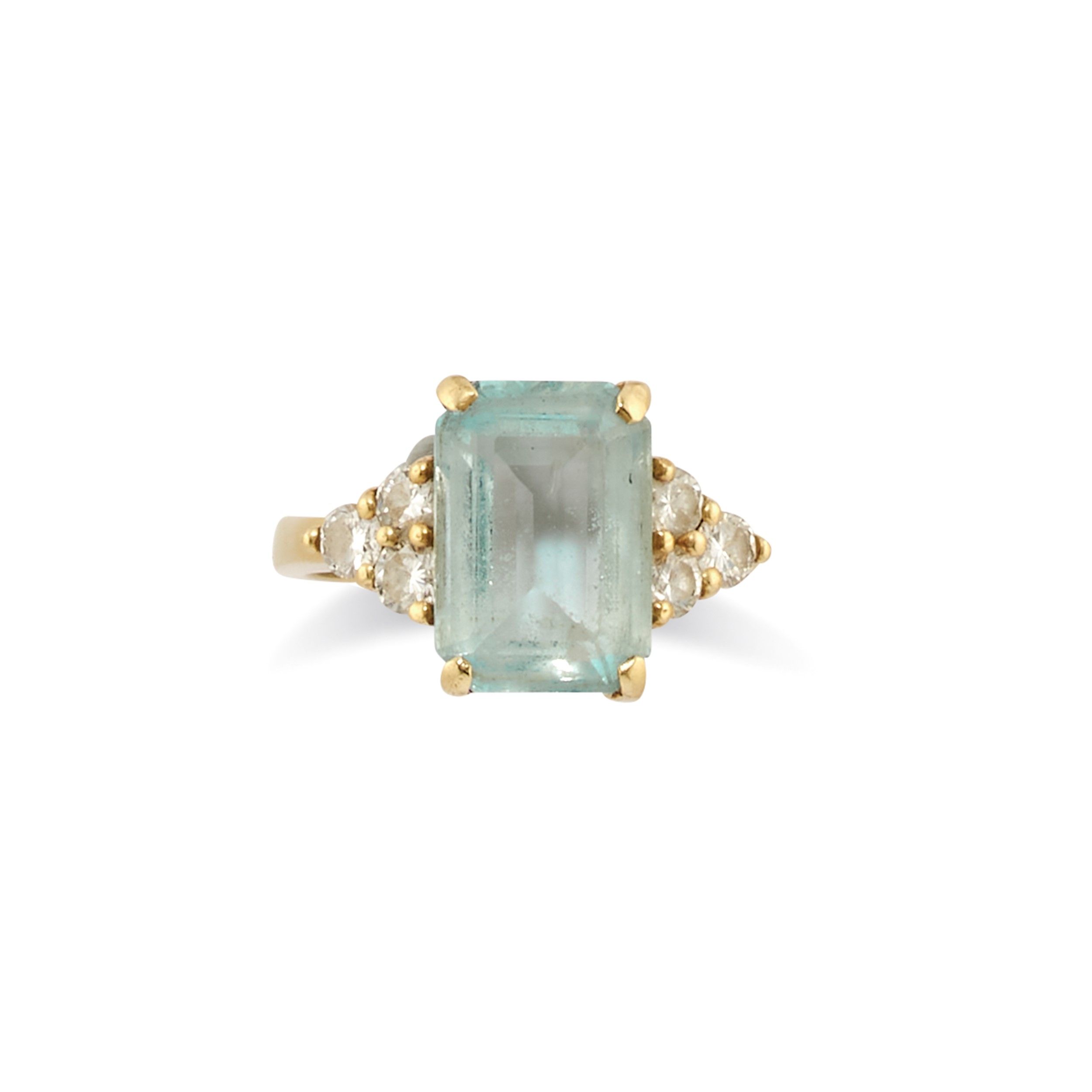 taglio smeraldo con ai lati diamanti taglio brillante per totale ct 0,90 circa.