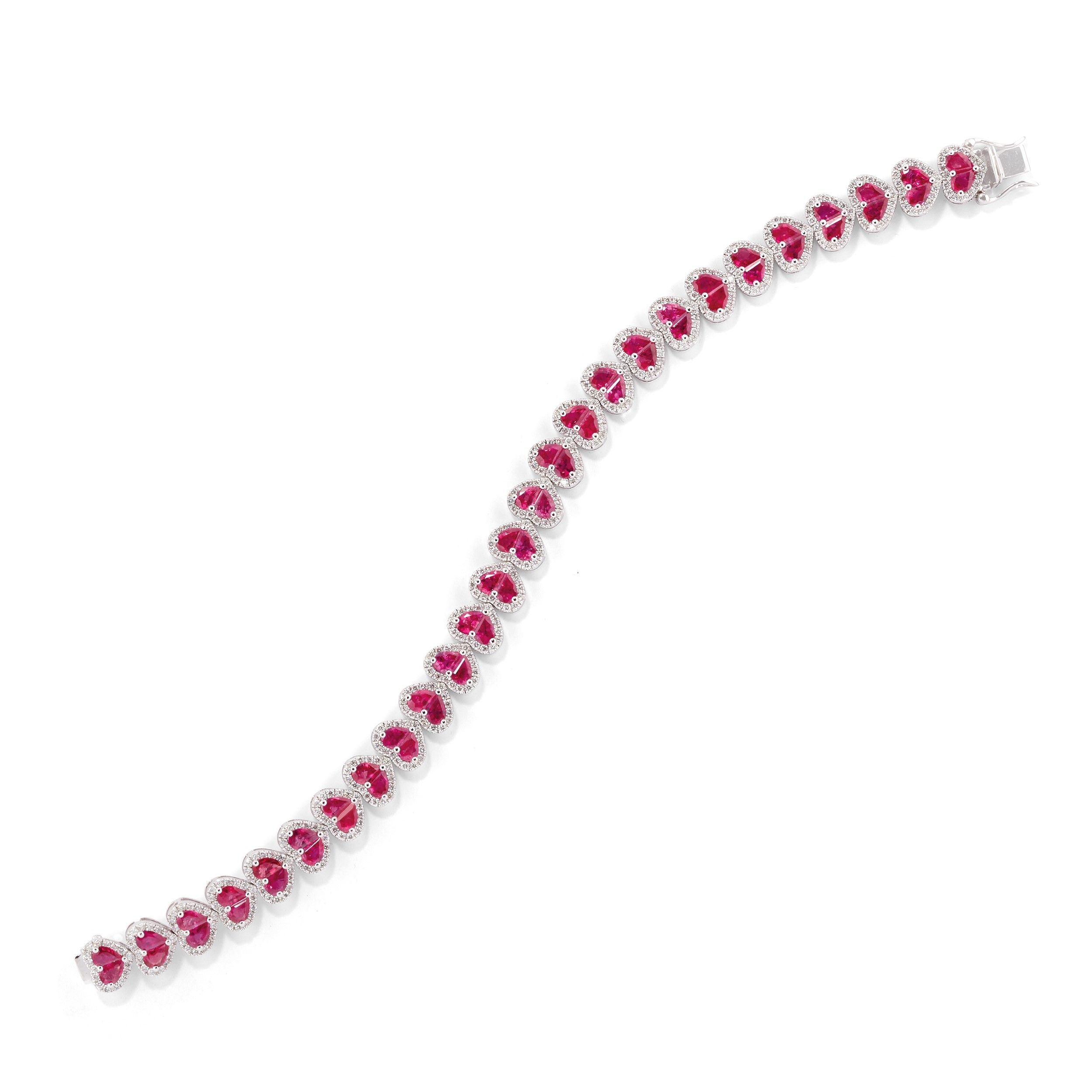motivi a cuore percorsi da rubini taglio fantasia per totale ct 12,62 (caratura incisa) e diamanti taglio brillanti per totale ct 2,70 (caratura incisa).