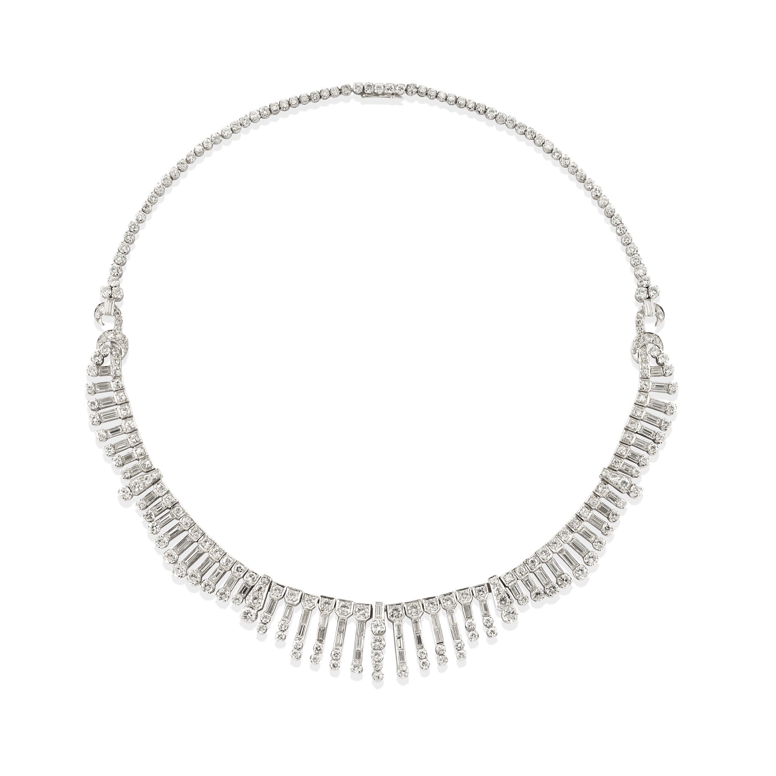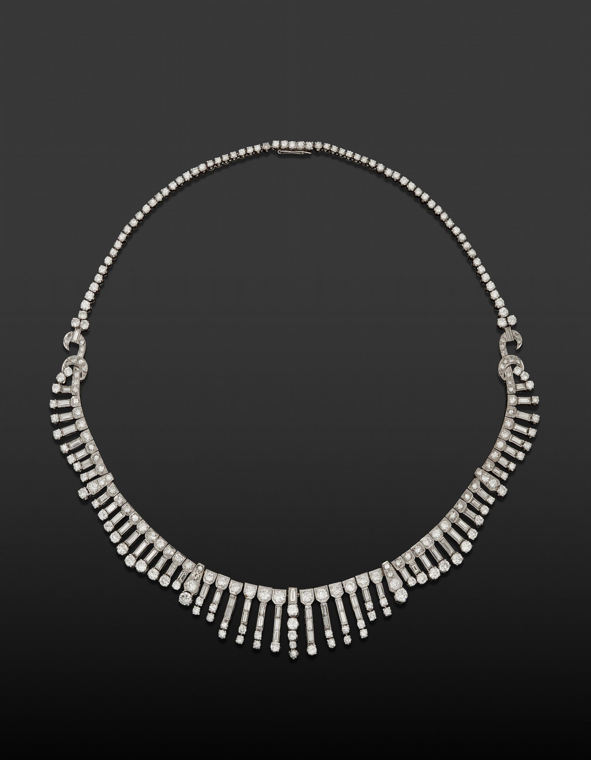 a bavaglino, interamente in diamanti taglio brillante, huit-huit e baguette per totale ct 15,00 circa.