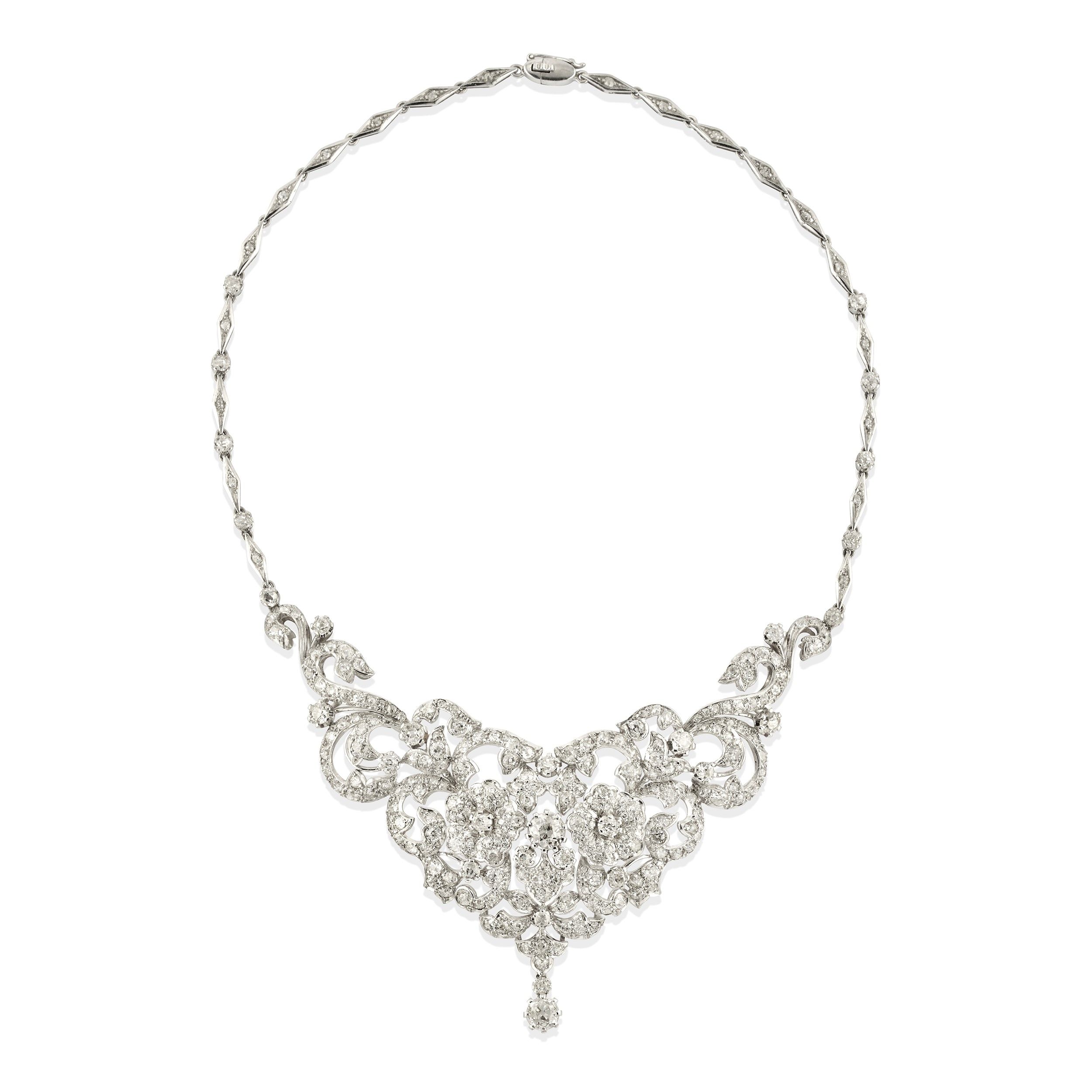 a bavaglino, interamente decorata da diamanti taglio vecchio per totale ct 15,00 circa.