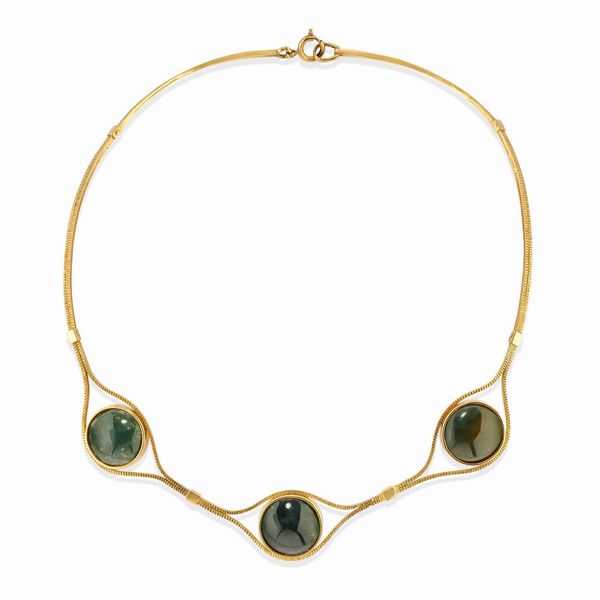 decoro dell'oro martellato, tre diaspri taglio rotondo cabochon.