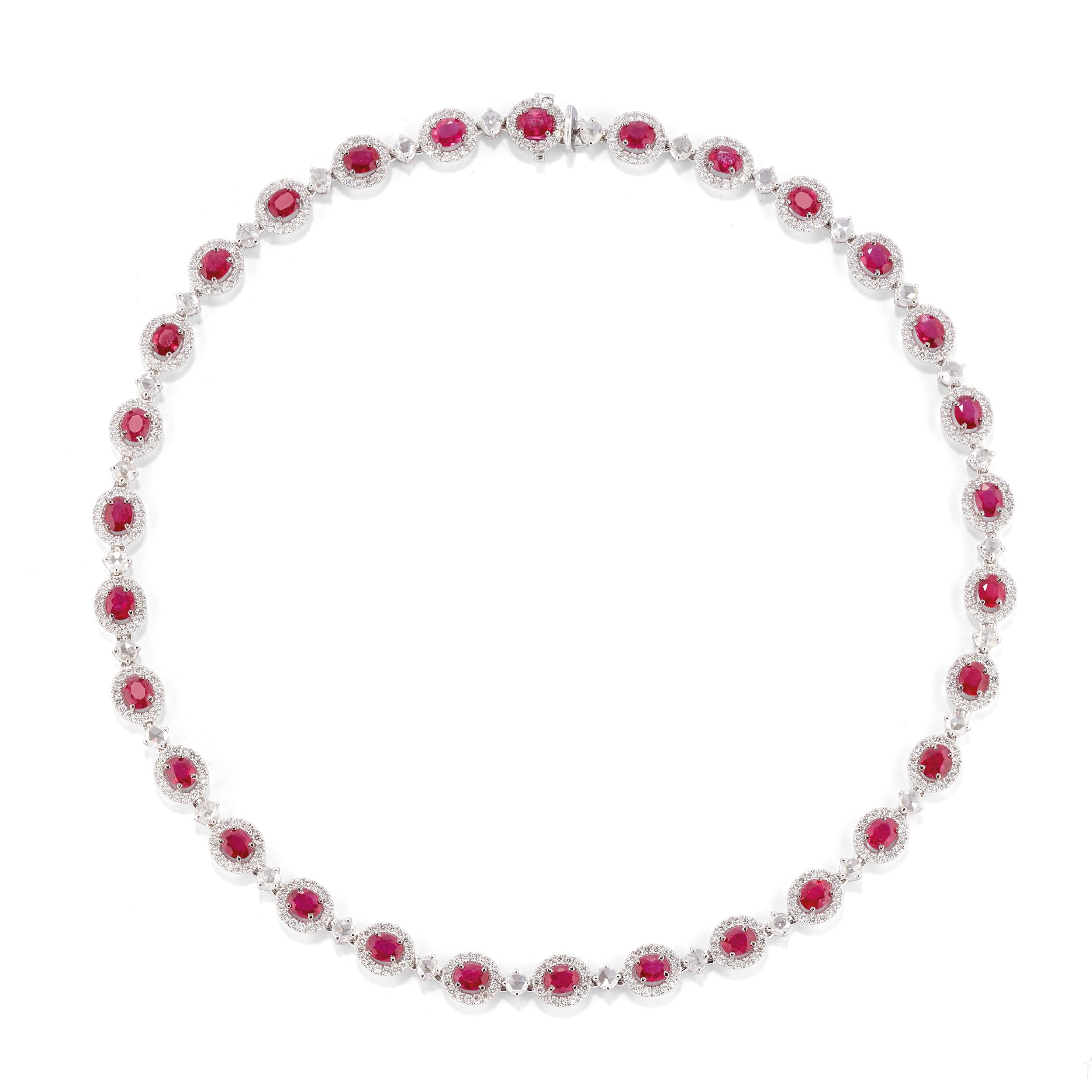 con rubini taglio ovale per totale ct 15,00 circa e diamanti taglio brillante e rosa per totale ct 8,00 circa.