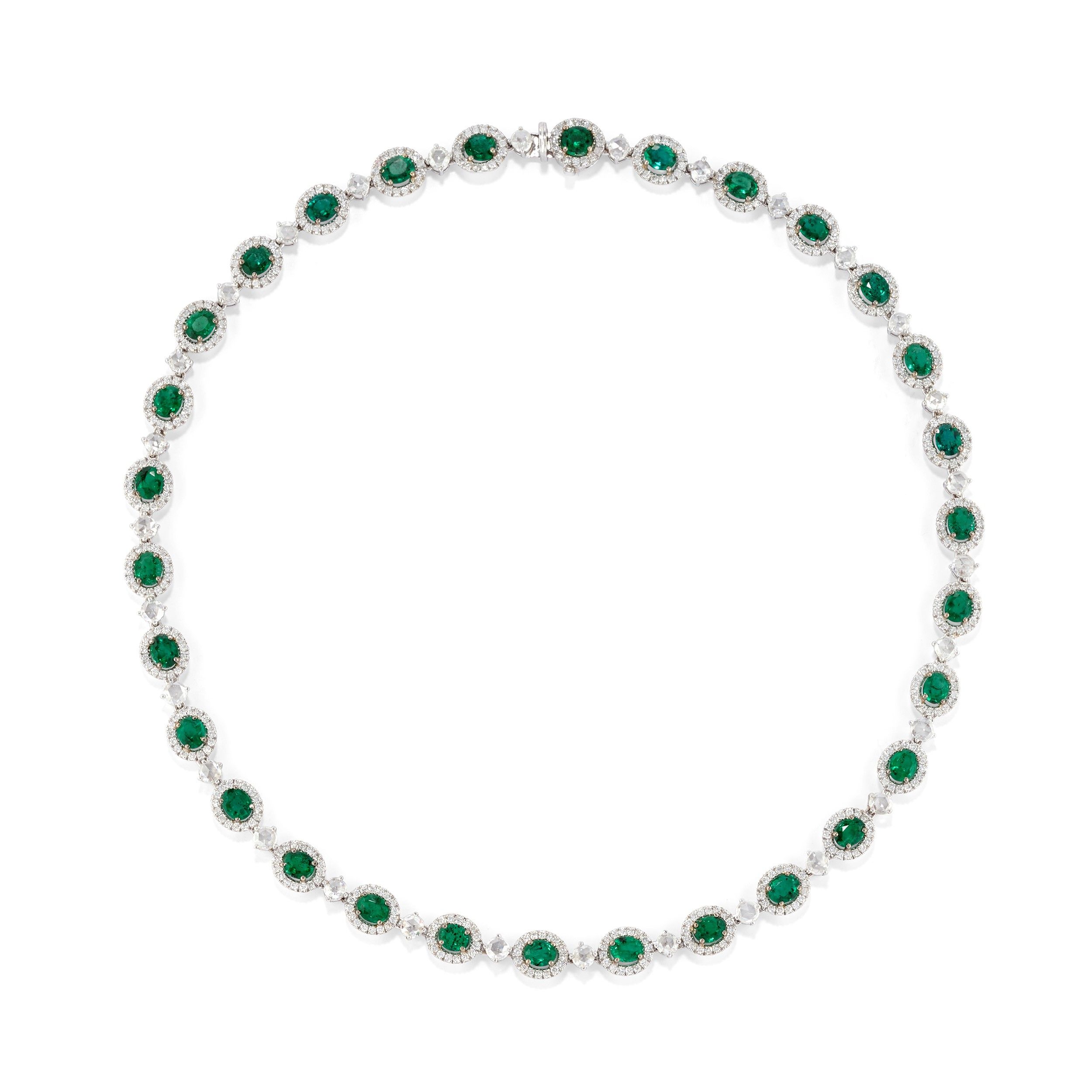 con smeraldi taglio ovale per totale ct 15,00 circa e diamanti taglio brillante e rosa per totale ct 8,00 circa.
