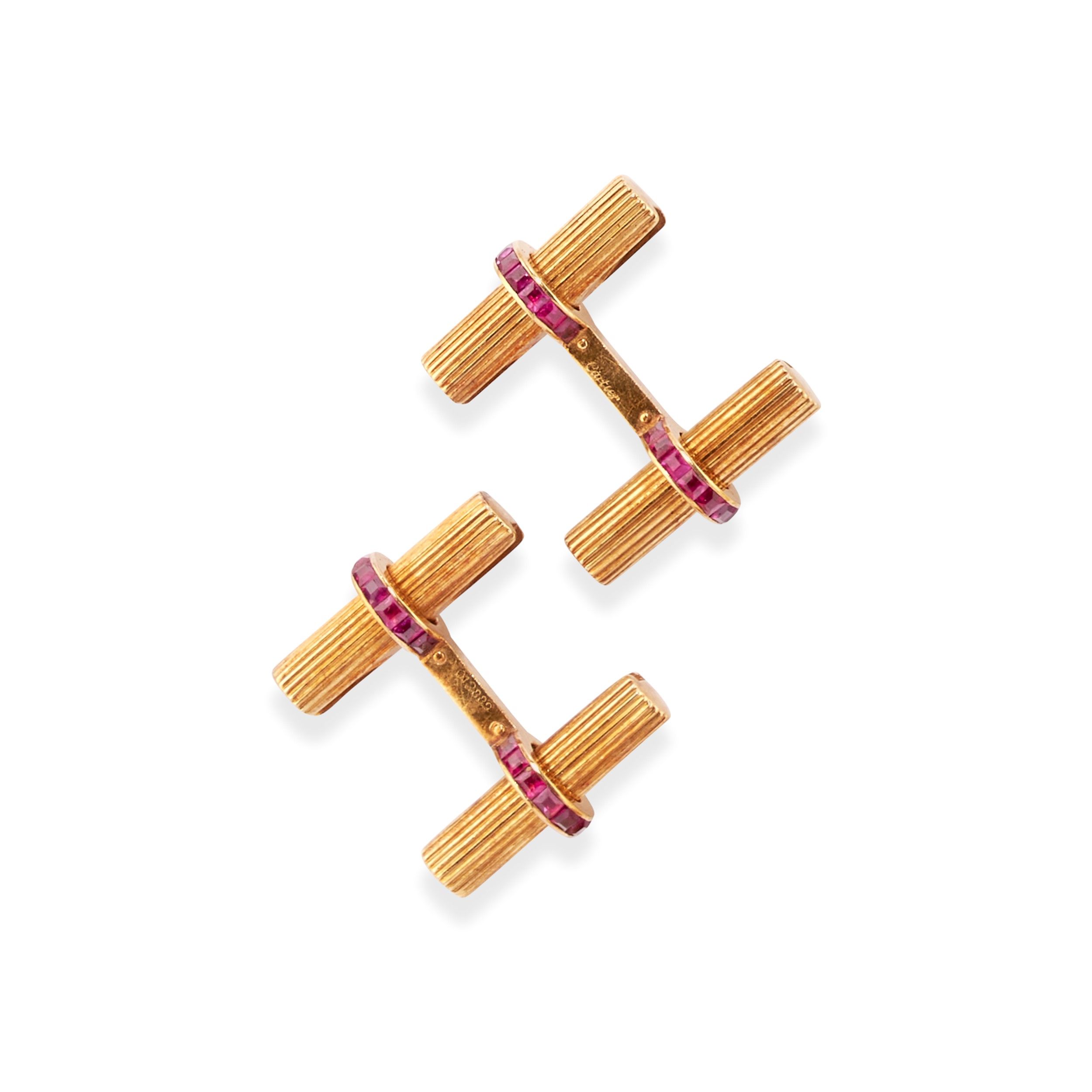settori a cilindro, con rubini taglio carrè incastonati a binario, con scatola.