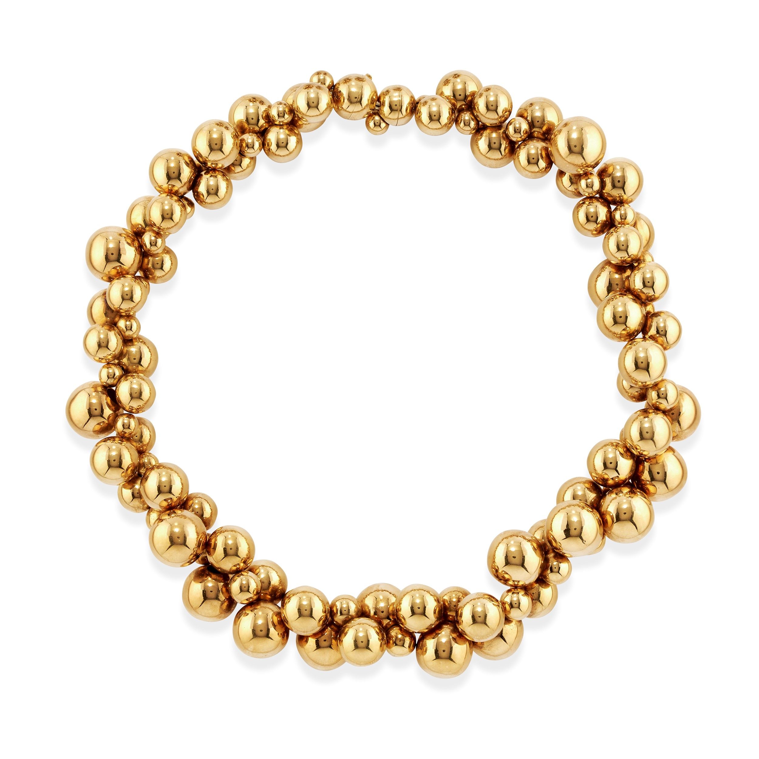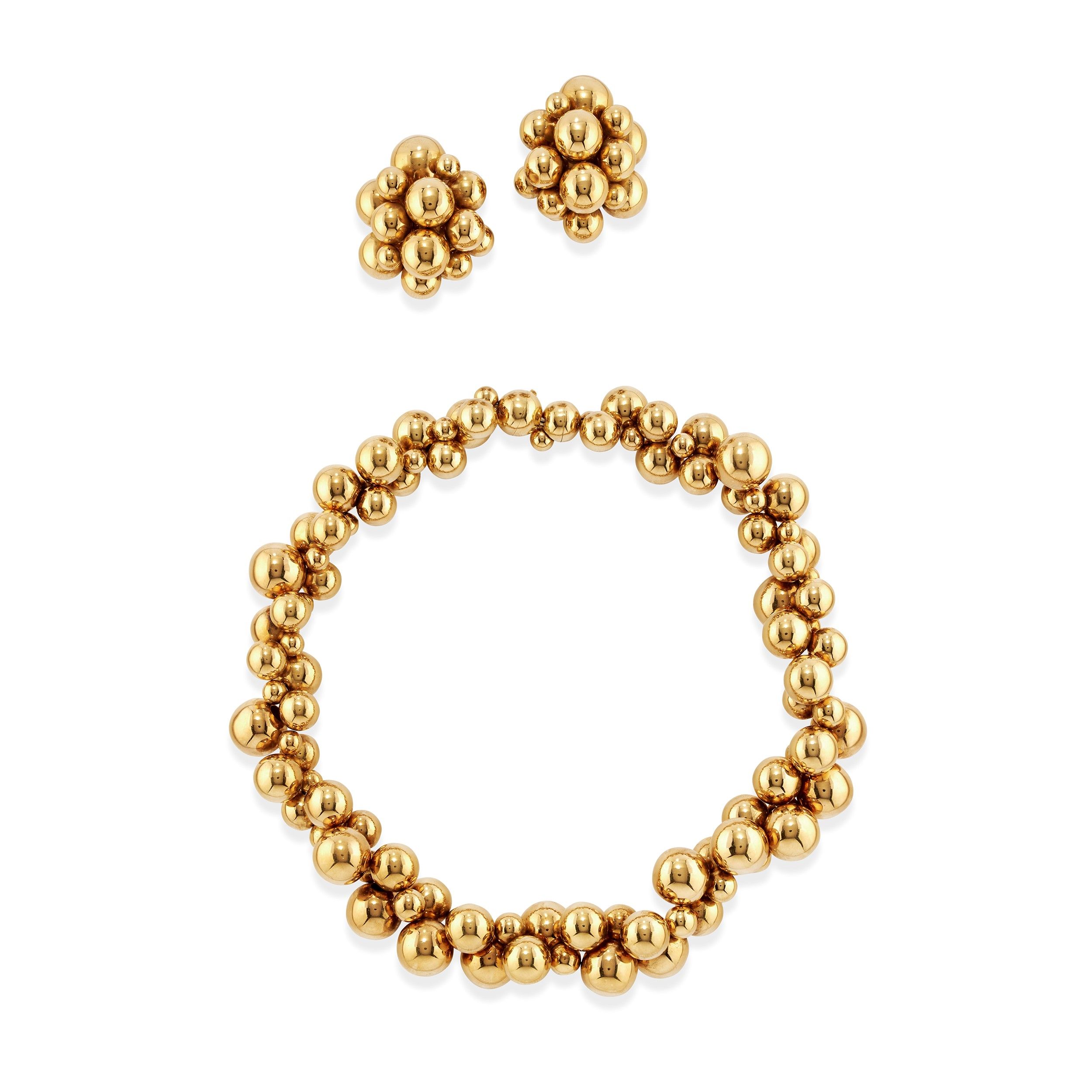 composta da collana e orecchini con chiusura a clip interamente in boules di differenti diametri.