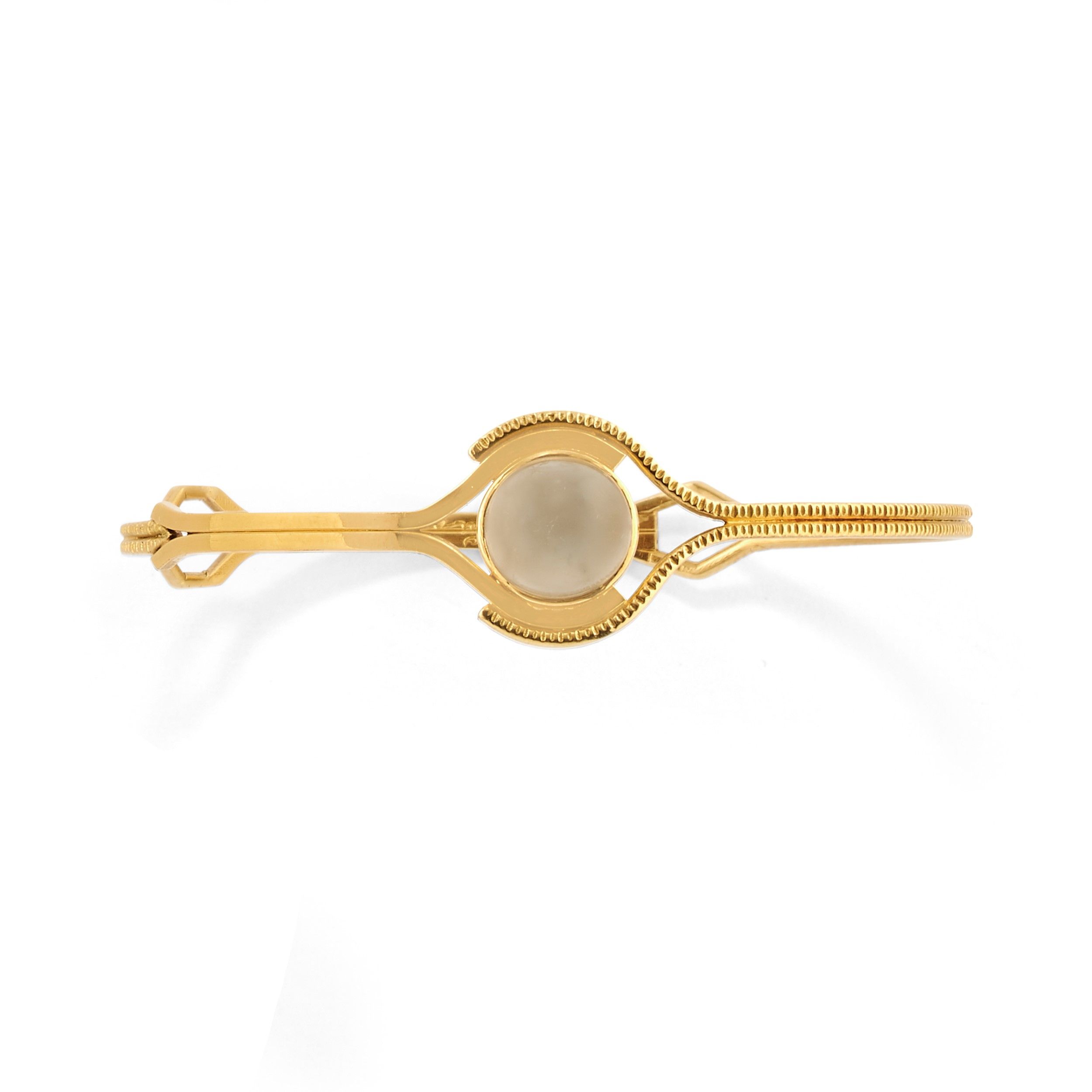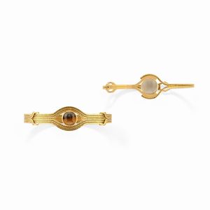 rigidi con pietra di luna e occhio di tigre taglio rotondo cabochon, decoro martellato.