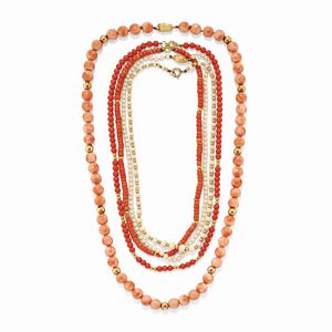 in oro giallo 18k, 14k e metallo dorato, Peso g 109,60 cm 34,00-36,00-38,00-42,00-60,00 composto da cinque collane [..]