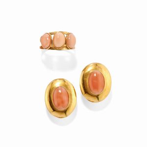 in oro giallo 18k, Peso g 12,50 misura 21 cm 1,90x2,40 composto da anello e orecchini con chiusura a clip.