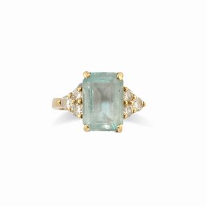 in oro giallo 18k, Peso g 9,15 misura 21 taglio smeraldo con ai lati diamanti taglio brillante per totale ct 0,90 [..]