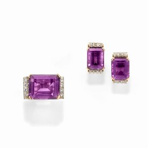 in oro giallo 18k, Peso g 25,00 di varie forme, smalto, ametiste taglio carrè, uno reca iniziali P.T.
