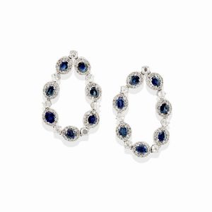 in oro bianco 18k, Peso g 6,70 cm 3,50 zaffiri taglio ovale per totale ct 3,00 circa e diamanti taglio brillante [..]