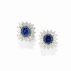 in oro bianco 18k, Peso g 4,80 cm 1,20x1,40 a fiore con al centro zaffiri taglio ovale per totale ct 2,60 circa, [..]