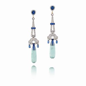 in oro giallo 14k e argento, Peso g 16,50 cm 7,50 impreziositi da zaffiri taglio goccia, carrè e baguette per [..]