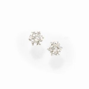in oro bianco 18k, Peso g 2,60 cm 0,70 con due diamanti taglio brillante per totale ct 2,60 circa, prob. colore [..]