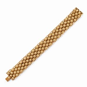 in oro giallo 18k, Peso g 76,00 cm 2,00x19,00 1950 circa a fascia con decoro a demi boules.