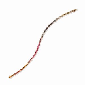 in oro rosa 18k, Peso g 6,40 cm 3,00 con zaffiri multicolor taglio rotondo per totale ct 2,00 circa, chiusura [..]
