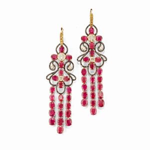 in oro giallo 18k e argento, Peso g 3,95 cm 0,90 a boule con rubini taglio rotondo per totale ct 3,00 circa, chiusura [..]