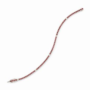 in oro bianco 18k, Peso g 9,60 cm 18,00 con rubini taglio rotondo per totale ct 3,50 circa e diamanti taglio [..]