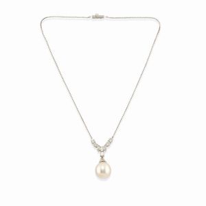 in oro bianco 18k, Peso g 90,30 cm 40,00 realizzata a bavaglino, perle coltivate di mm 9,00 circa intervallate [..]