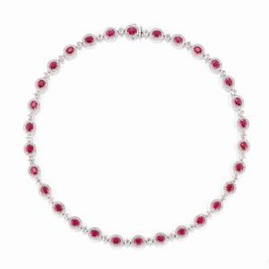 in oro bianco 18k, Peso g 28,85 lunghezza cm 40,00 con rubini taglio ovale per totale ct 15,00 circa e diamanti [..]