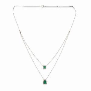 in oro bianco 18k, Peso g 4,90 cm 43,00 maglia ad anelli, con smeraldi taglio goccia e cuscino per totale ct 1,507 [..]