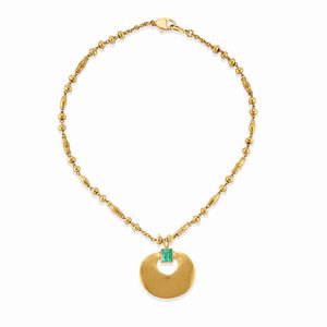 in oro giallo 18k, Peso g 40,00 cm 45,00 realizzata con decoro martellato, al centro smeraldi taglio ovale cab [..]