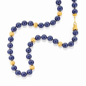 in oro giallo 18k, Peso g 248,80 cm 82,00 ad un filo di boules di mm 13,00 circa ed interruttori in oro satina [..]