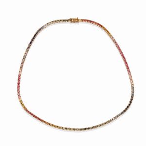in oro rosa 18k, Peso g 29,30 cm 42,50 con zaffiri multicolor taglio rotondo per totale ct 10,00 circa.