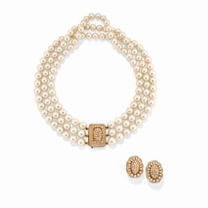 in oro bicolore 18k, Peso g 174,00 cm 38,00 cm 2,80x2,10 composta da collana a tre fili di perle coltivate di [..]