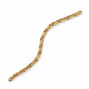 in oro bicolore 18k, Peso g 102,20 cm 3,50x18,00 1950 circa realizzato con inserti verticali in oro satinato [..]