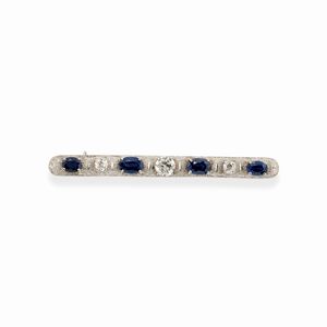 in oro bianco 18k, Peso g 5,80 cm 6,00 con zaffiri taglio ovale per totale ct 2,00 circa e diamanti taglio vecchio [..]