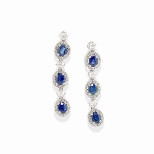 in oro bianco 18k, Peso g 6,70 cm 3,50 zaffiri taglio ovale per totale ct 3,00 circa e diamanti taglio brillante [..]