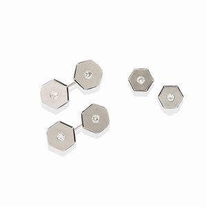 in oro bianco 18k, Peso g 18,20 cm 36,00-4,50 composta da collana e coppia di orecchini con chiusura perno e farfalla, [..]