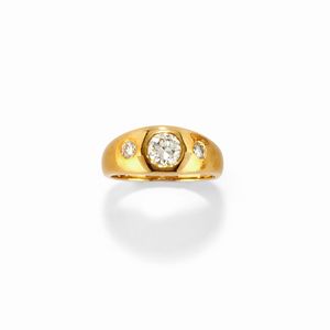 in oro giallo 18k, Peso g 8,80 misura 15 a fascia bombata con al centro un diamante taglio vecchio di ct 0,80 [..]