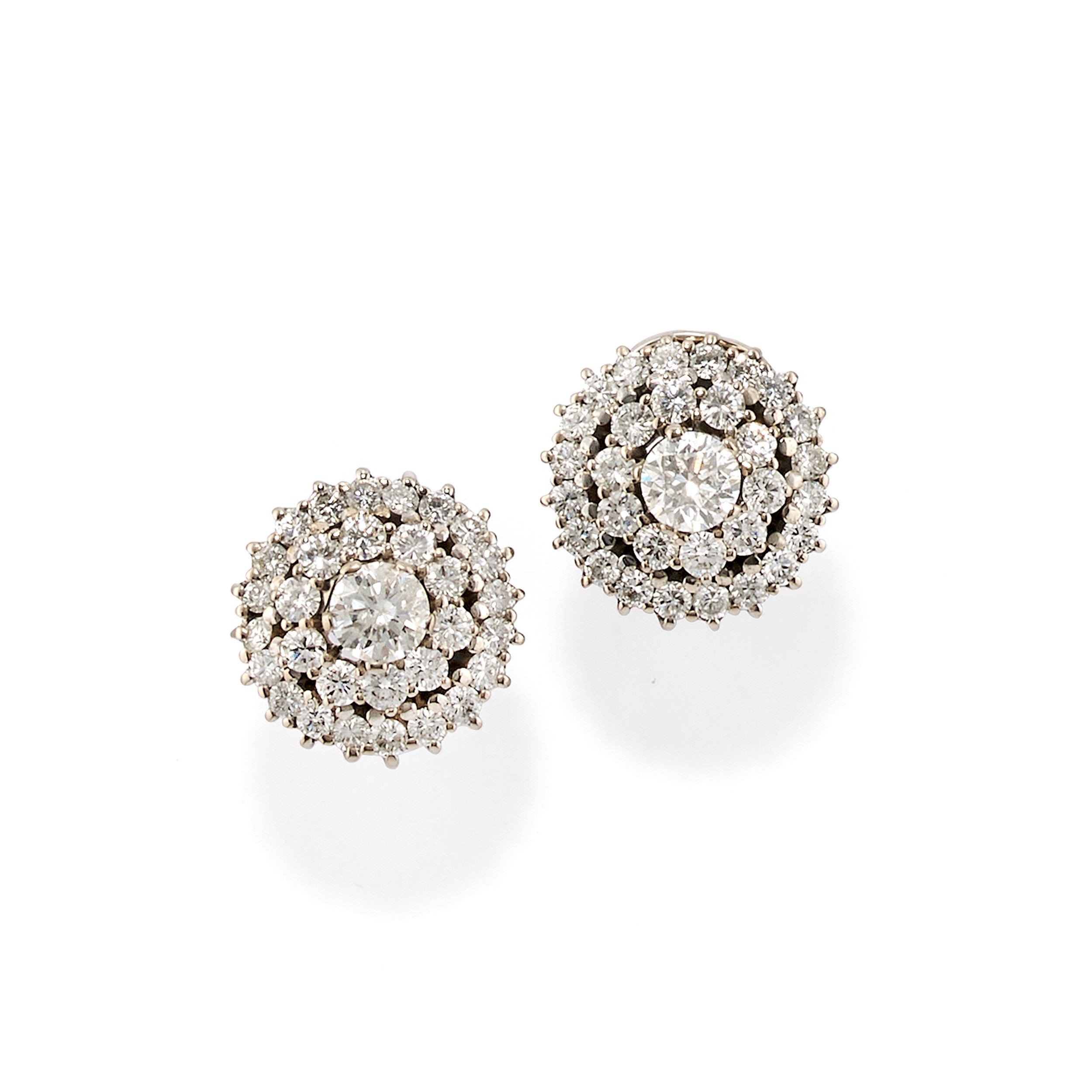 a bottone con diamanti taglio brillante per totale ct 3,00 circa, chiusura perno e clip.