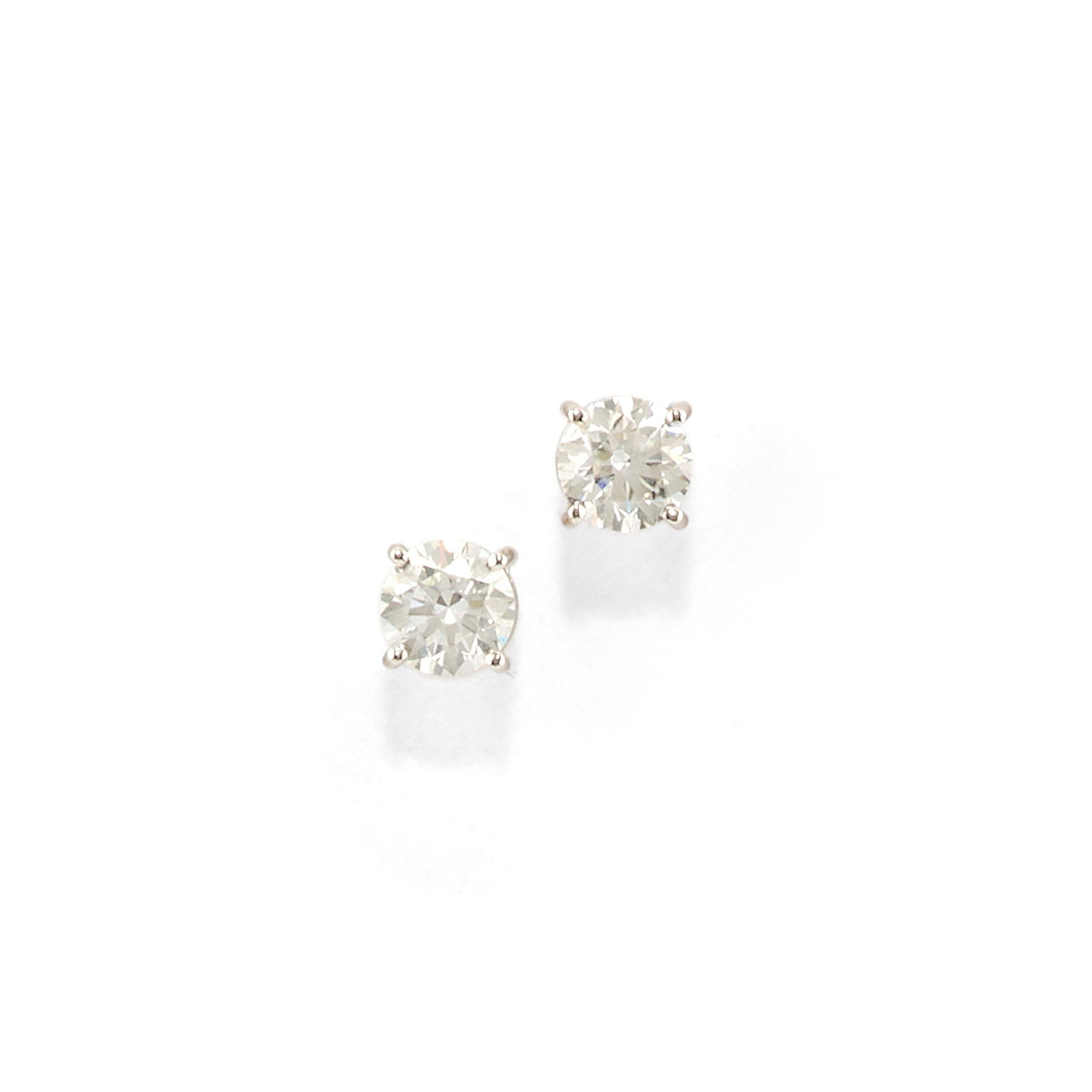 taglio brillante per totale ct 1,85, prob. colore I/J,  purezza SI, entro castoni a quattro griffe, chiusura perno e farfalla.