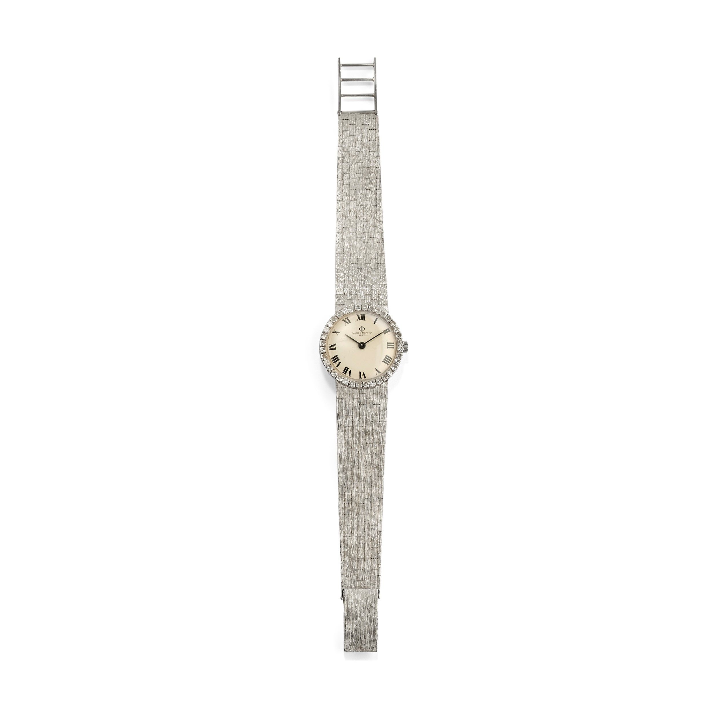 cassa rotonda, quadrante chiaro con numeri romani in smalto nero, lunetta in diamanti taglio huit-huit, movimento a carica manuale.