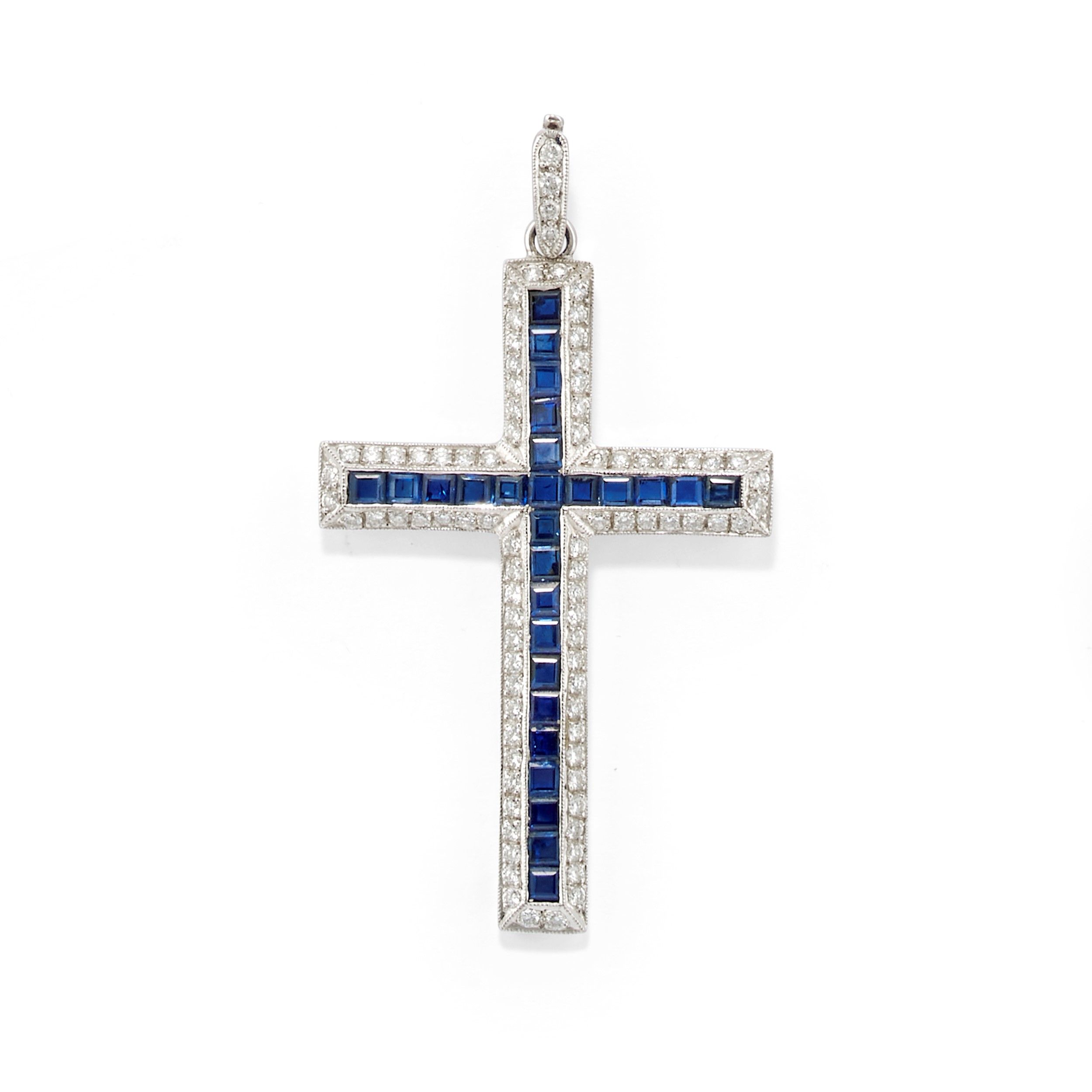 decorato da zaffiri calibrati taglio carré e diamanti taglio brillante.
