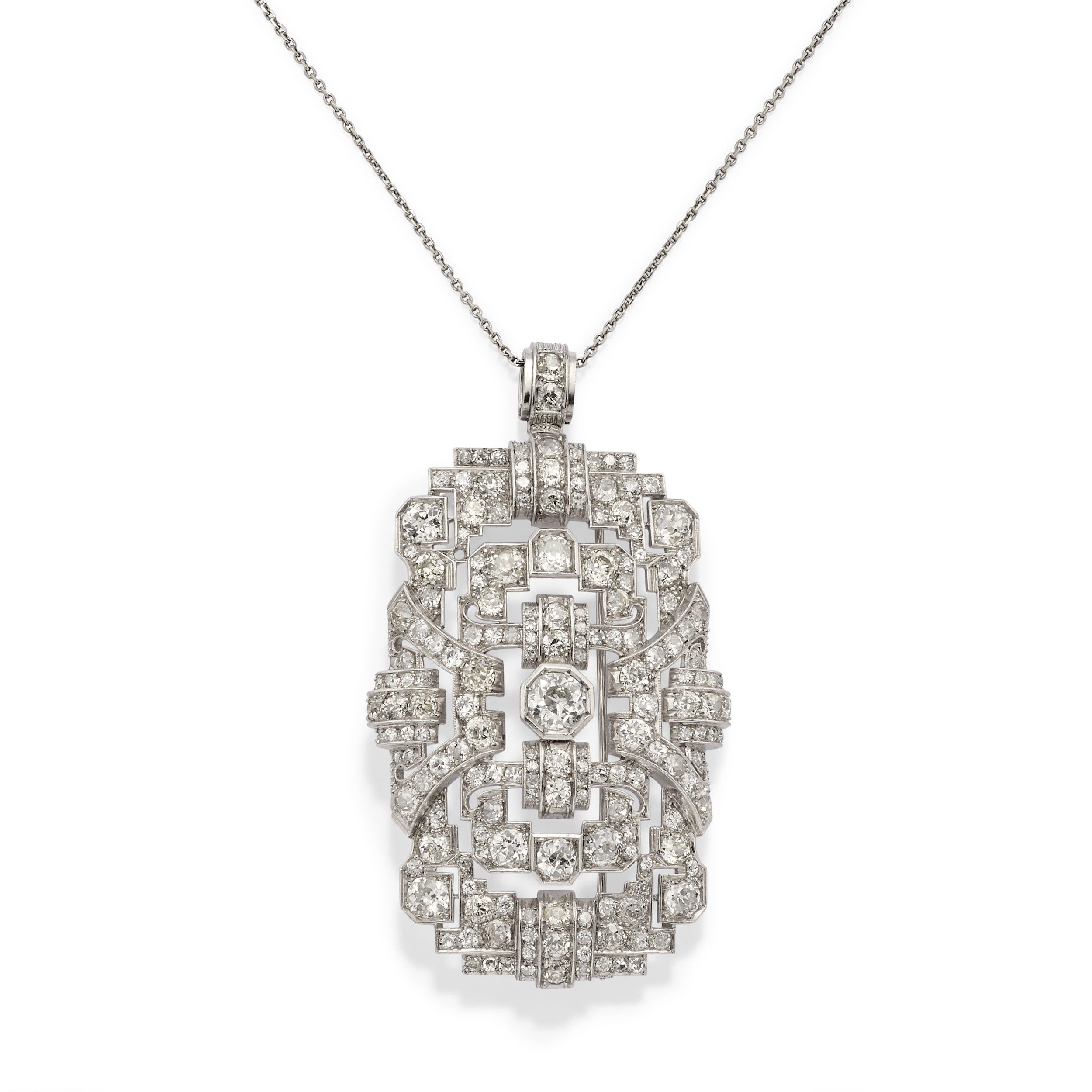 1925 circa di forma rettangolare, interamente traforata, al centro diamante taglio vecchio di ct 1,70 circa, diamanti taglio vecchio e huit-huit a decoro per totale ct 12,00 circa, con decoro a milligrano.