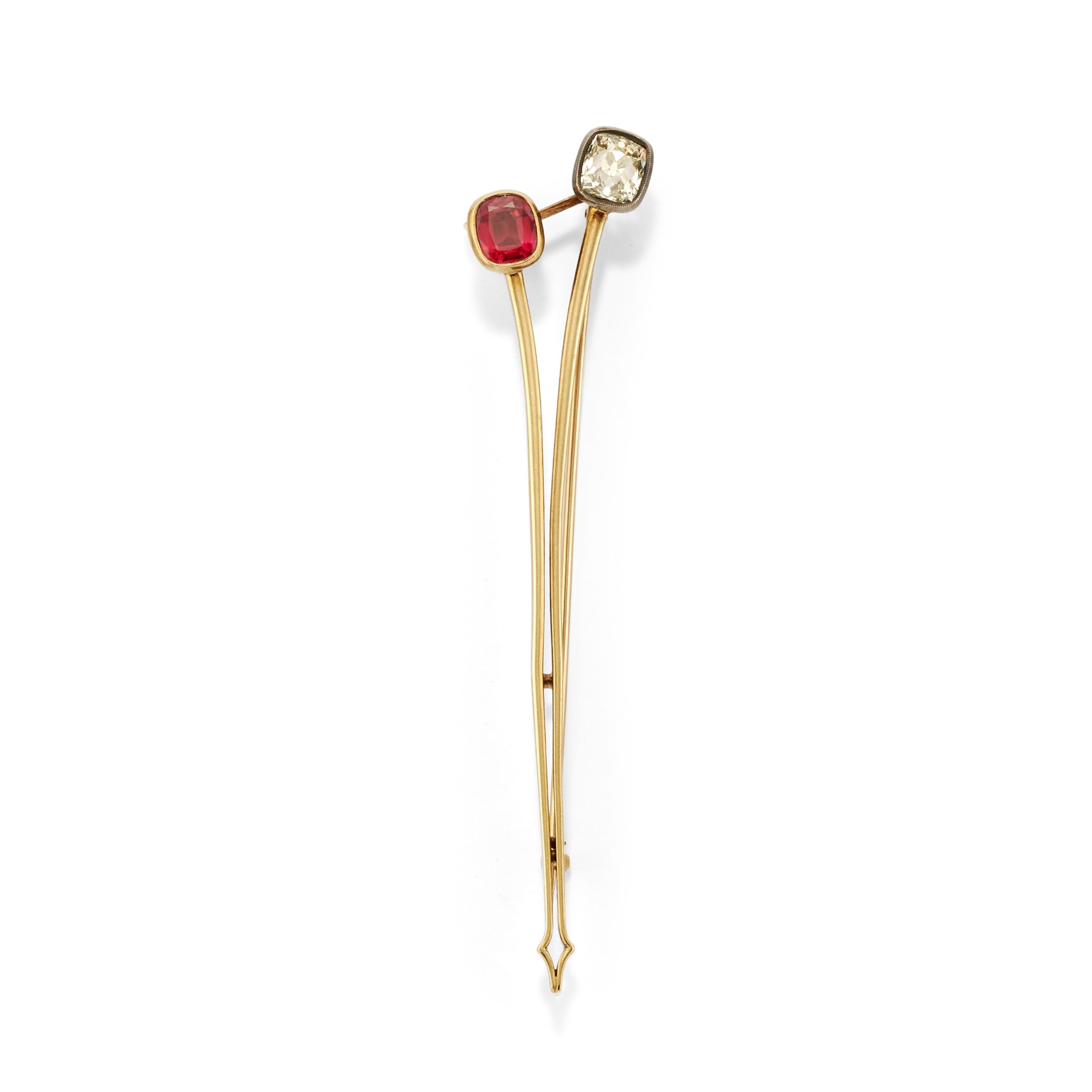 con rubino sintetico taglio cuscino e diamante taglio cuscino di ct 1,50 circa
