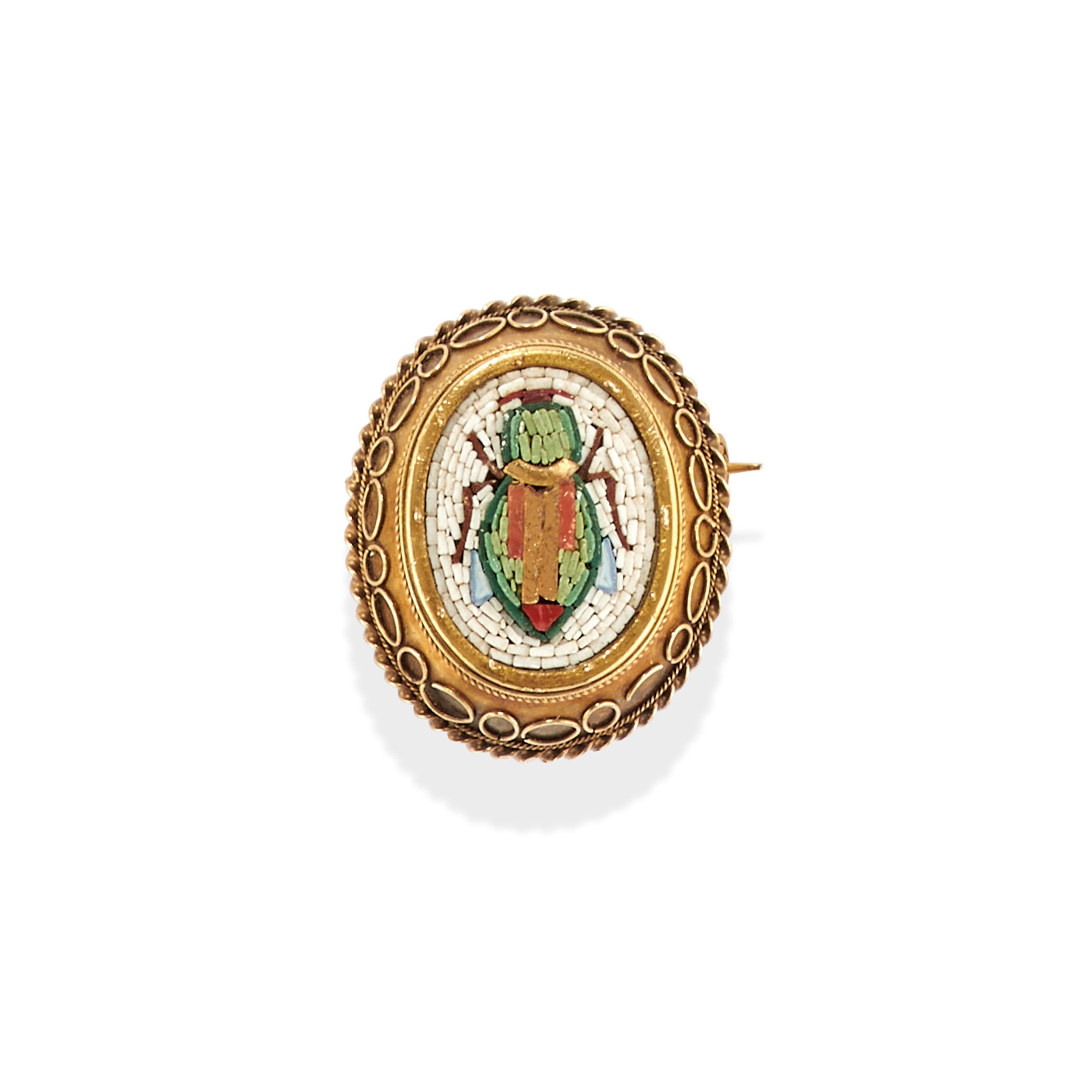 XIX Secolo a scarabeo realizzata in pasta vitrea entro cornice decorata in filo d'oro ritorto.