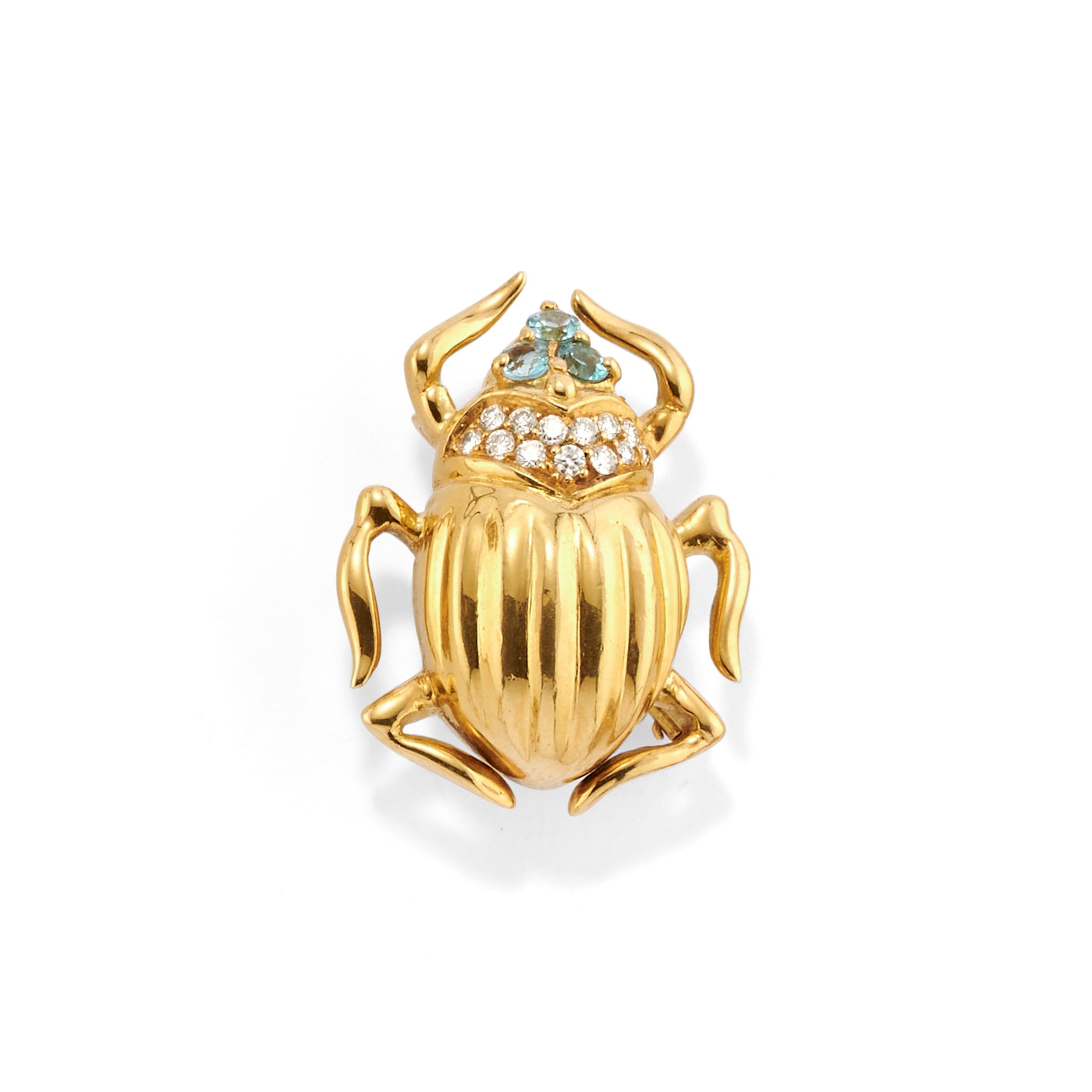 impreziosita da diamanti taglio brillante e topazi azzurri taglio rotondo.